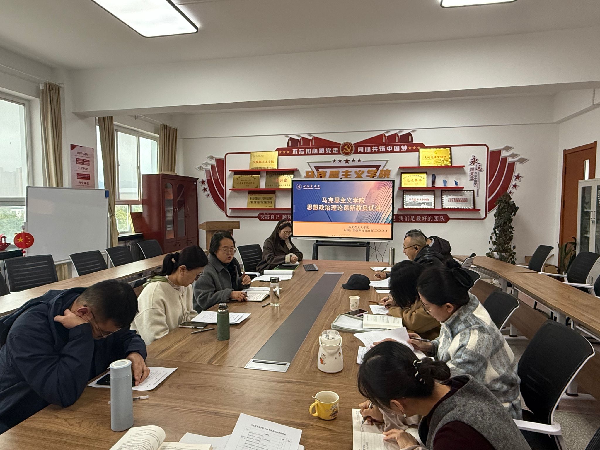 为了加强马克思主义学院教师队伍建设,提升思政课教学质量,落实立德树人根本任务,10月21日上午,甘肃医学院马克思主义学院在学院会议室组织开展了新进教师试讲活动。会议由教务科科长秦帼英主持,全体无课老师参加了此次活动。