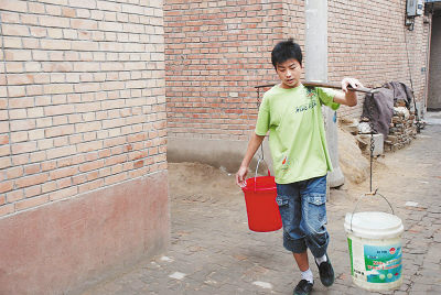 时至今日,张晓家还在挑水吃。本报记者狄多华摄