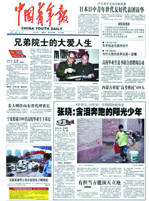 张晓一心想的是参军,之后在部队考军校,“这样我可以把别人的帮助降到最低,在部队上军校,尽早为社会作贡献。”(摘自2007年6月14日《中国青年报》)