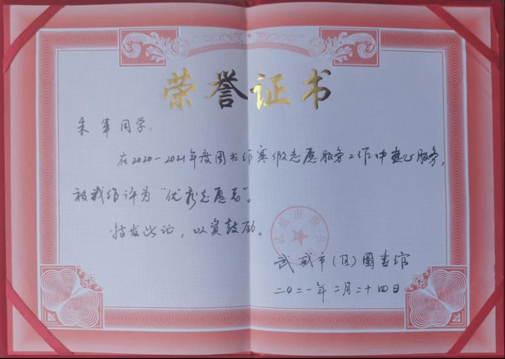 直至这封表扬信送到学校,朱军同学的事迹才被学校老师、同学知晓。