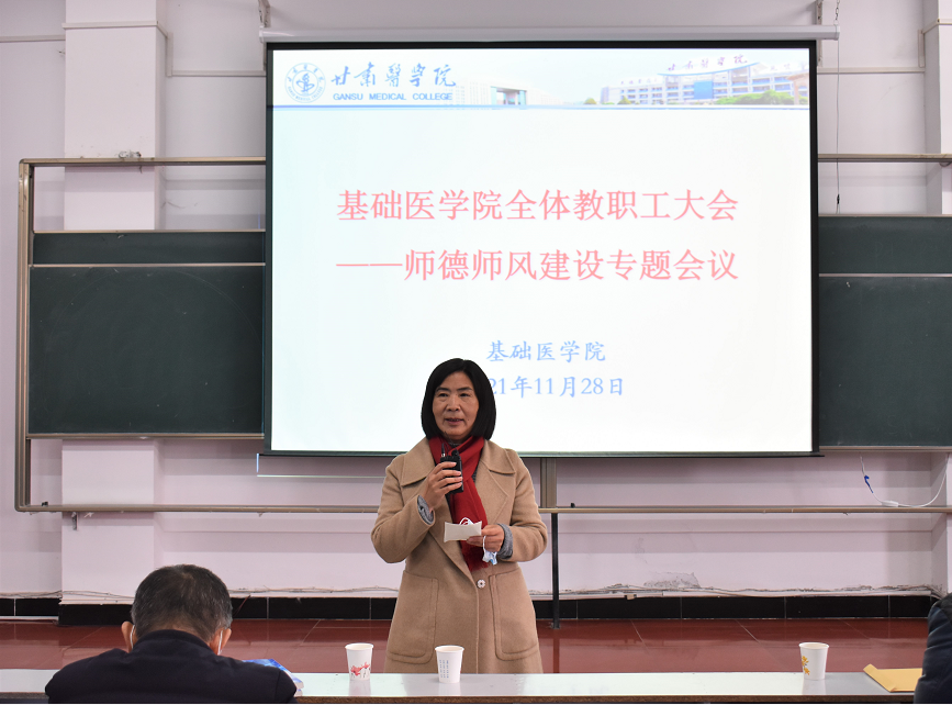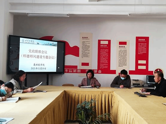 为深入贯彻落实习近平总书记关于教育特别是高等教育的重要论述,按照《中共甘肃医学院委员会关于印发<教师师德师风建设工程实施方案>的通知》文件精神,积极构建师德师风建设长效机制,11月19日下午,基础医学院在党团活动室再次召开党政联席会议专题研究师德师风工作,推进我院师德师风建设工程。