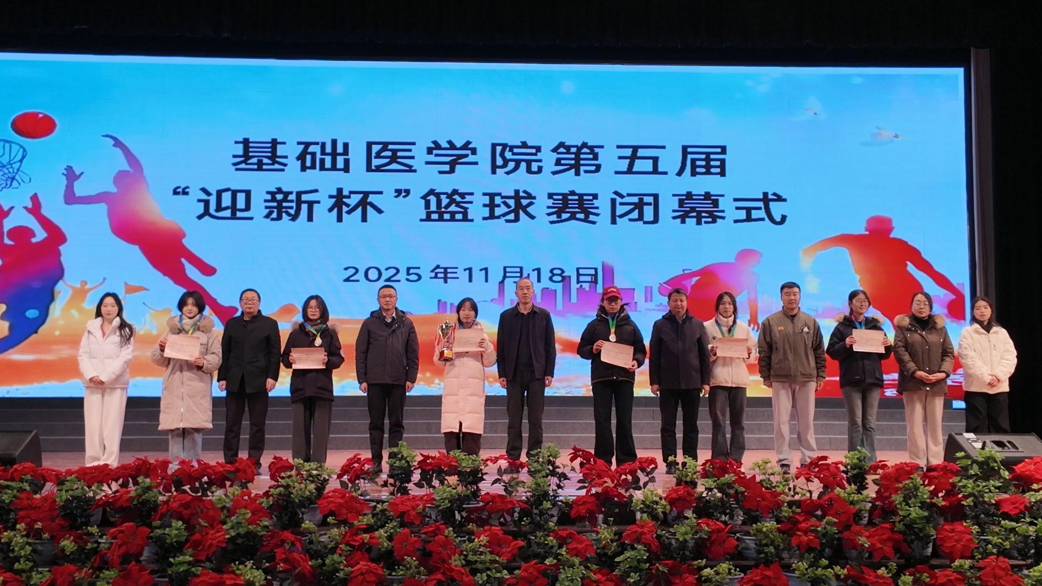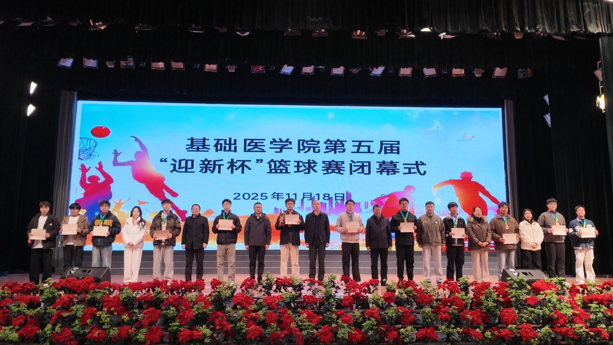 11月18日,基础医学院第五届“迎新杯”篮球赛闭幕暨颁奖仪式在学校体育馆顺利举行。学院党总支书记雷世鑫,副院长李红恩,党总支副书记、副院长徐克国,办公室、学生科、教务科负责人和相关班主任、辅导员参加仪式,与全体参赛队员共同见证荣耀时刻。