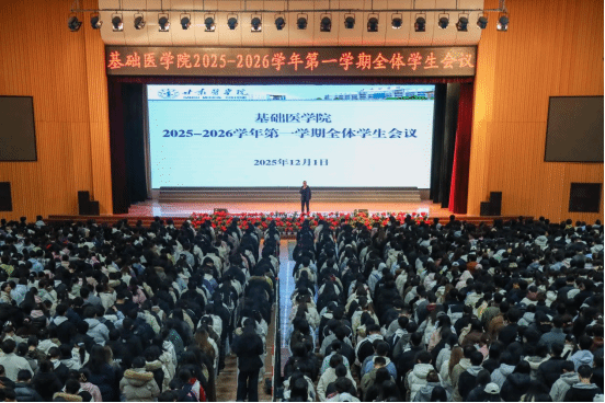 为进一步做好期末复习备考工作,强化学生安全与纪律意识,12月1日,基础医学院在体育馆召开全体学生大会,就学习、安全与纪律等方面作出全面部署。会议由基础医学院党总支副书记、副院长徐克国主持,全体在校班级学生,各班班主任、辅导员参加。