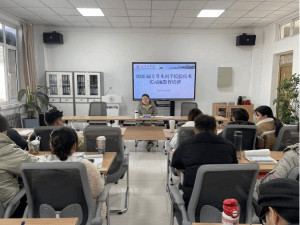 20251230至31日,为扎实做好2026专升本医学检验技术学生实习工作,帮助学生熟悉医院环境,了解就业前景,筑牢安全意识,基础医学院科技楼308室组织开展了该专业学生实习教育培训。