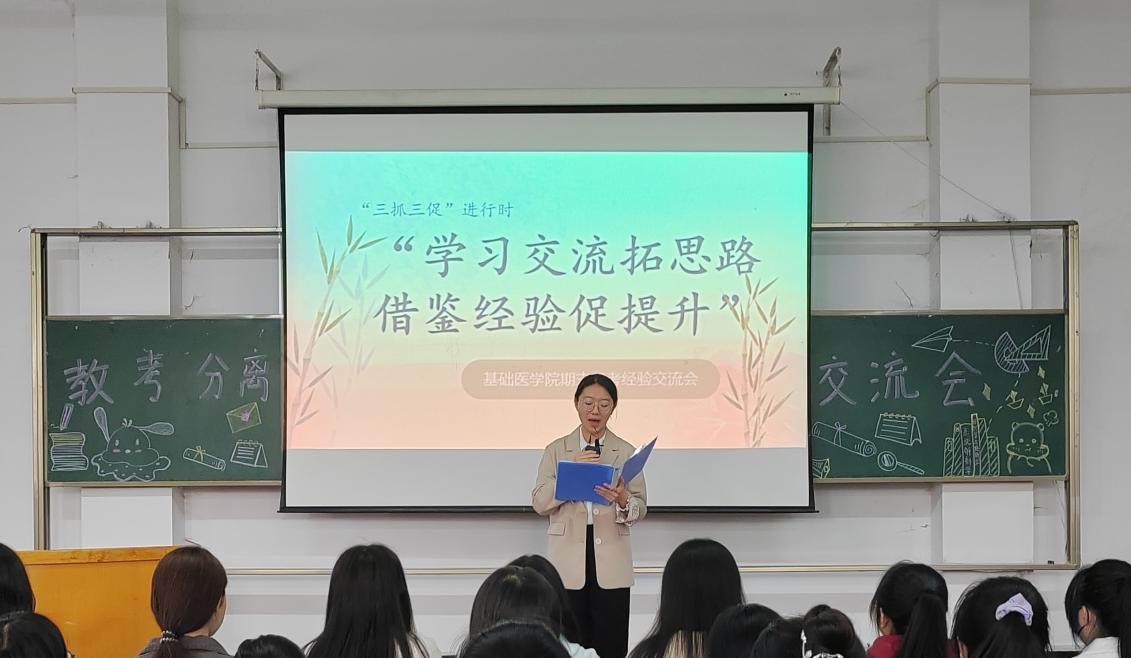 为推动“学风建设年活动”深入开展,提升“三抓三促”和主题教育质效,基础医学院坚持倾听群众呼声,着力解决学生急难愁盼问题,针对近期同学们在学习上的困惑和教考分离难点,进一步丰富“以帮促学”形式与内容,于6月4日下午在一号教学楼第二大教举办“学习交流拓思路,借鉴经验促提升”期末备考经验交流会,近400余名学生参加了活动。
