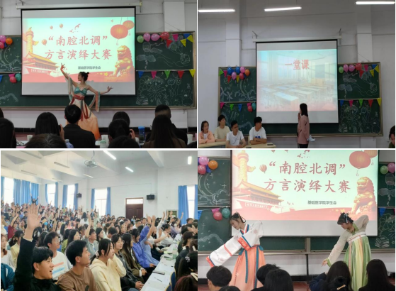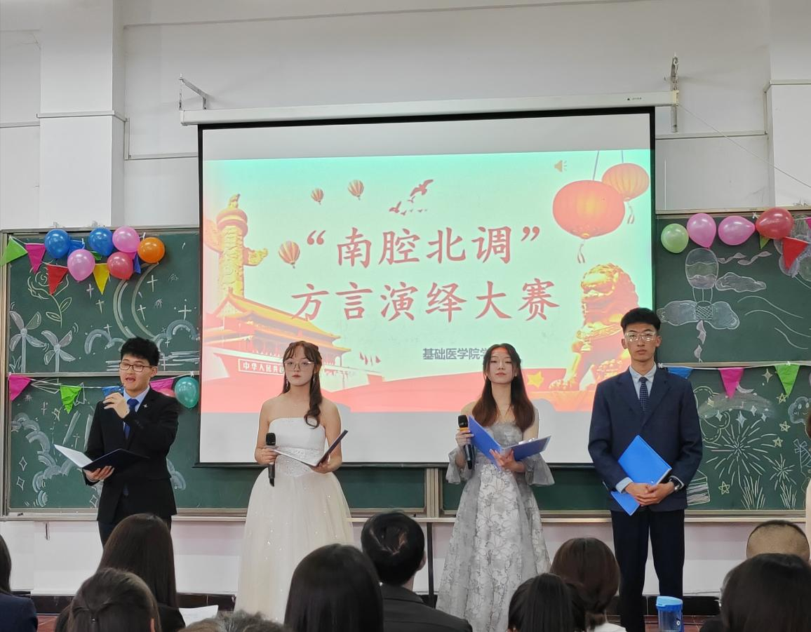 最美不过家乡话,最恋不过故园情。为进一步丰富同学们的校园文化生活,增进同学们之间的相互了解,在创意碰撞间体验各地区独特的风俗文化,激发大学生弘扬家乡文化的热情,充分展示中华民族艺术的魅力,基础医学院学生会于4月16日在一号教学楼第二大教举办了“五湖四海聚一堂,南腔北调慰人心”方言演绎大赛。活动现场气氛热烈,学院学生科全体老师和近400余名学生共享视听盛宴。