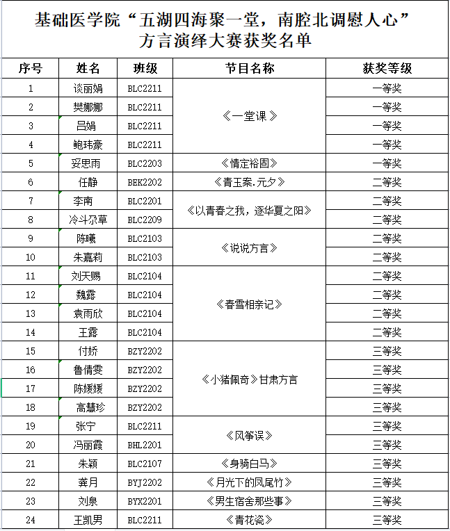 附件:基础医学院“五湖四海聚一堂,南腔北调慰人心”方言演绎大赛获奖名单