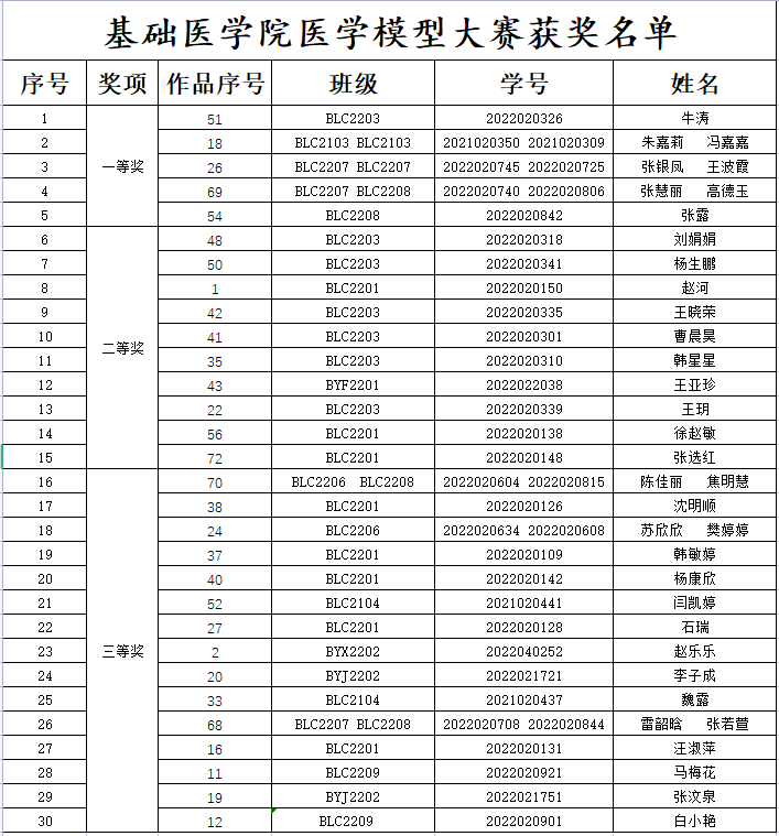 附件:基础础医学院医学模型大赛获奖名单