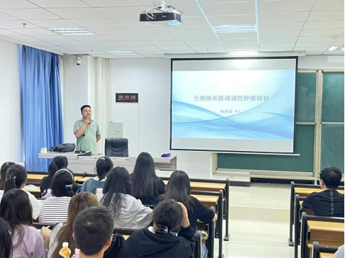9月7日晚19:00,基础医学院副院长杨建设博士在第二教学楼B座四大教为学生们做了题为《生物纳米限域调控肿瘤转移》的讲座,旨在借助此高精尖课题向同学们介绍毕业与科研论文的书写规范与研究方法。