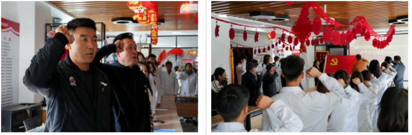 万安门社区退役老兵首先带领我们重温入党誓词,同学们声音洪亮,精神饱满,慷慨激昂。