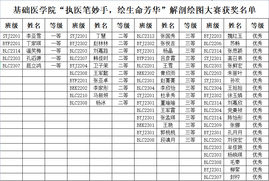 附件:基础医学院“执医笔妙手,绘生命芳华”解剖绘图大赛获奖名单