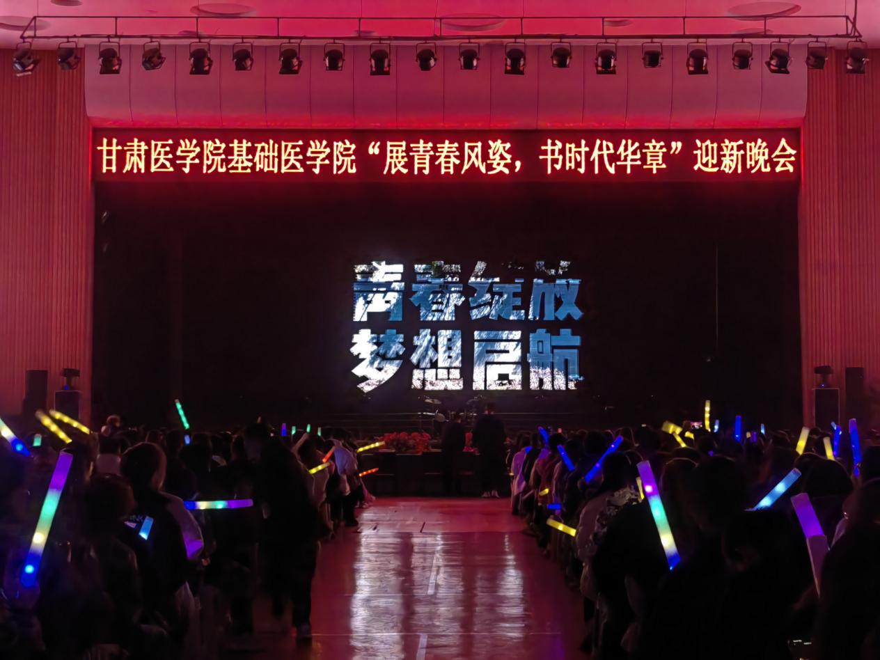 齐奏奋进号角,同歌盛世青春,绚烂的舞台灯光,阳光的青春面庞,如诗般的大学时光,幕布已然拉开。为丰富同学们的课余生活,增强2023级新生对甘医大家庭的归属感,营造良好校园文化氛围,11月19日晚基础医学院“展青春风姿,书时代华章”迎新晚会在体育馆顺利举行。学院学生工作部部长朱天荣、图书馆馆长柳爱平、副馆长穆亚梅、部门党政负责人出席,学生科全体教师和1500余名学生参加活动。