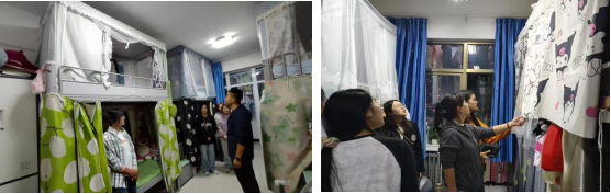 9月13日,学生科负责人带领全体班主任、辅导员,分为六个小组,对8栋公寓近400间宿舍进行了逐一走访,并按照宿舍规范化管理细则逐项检查、打分评比,现场指出在设置、安全、卫生、秩序等方面存在的问题,要求舍长切实履行岗位职责,每位同学要做好自身的安全健康管理,自觉遵守公寓管理规定,共同营造安全、整洁、文明、健康、和谐的宿舍环境。