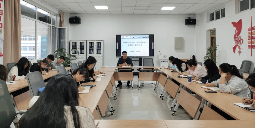 2024年9月12日,基础医学院组织学生科全体成员及班主任、辅导员召开2024-2025学年第四次班主任工作会议,对近期工作进行安排部署。