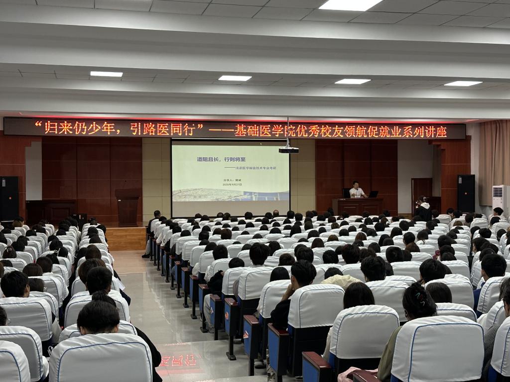 文艺汇演结束后,基础医学院在科技楼五楼报告厅组织召开优秀校友领航促就业系列讲座,会议由基础医学院副书记、副院长徐克国主持,党总支书记雷世鑫基础医学院各科室负责人、医学检验技术专业班主任、辅导员及本专业全体学生参会。