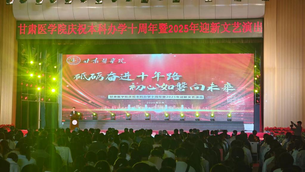 下午16:30,校友代表前往学校体育馆,观看“甘肃医学院本科办学十周年晚会暨迎新文艺汇演”。晚会通过歌舞、朗诵、情景剧、医学主题表演等多种艺术形式,生动展现了学校十年办学成果与师生精神风貌。