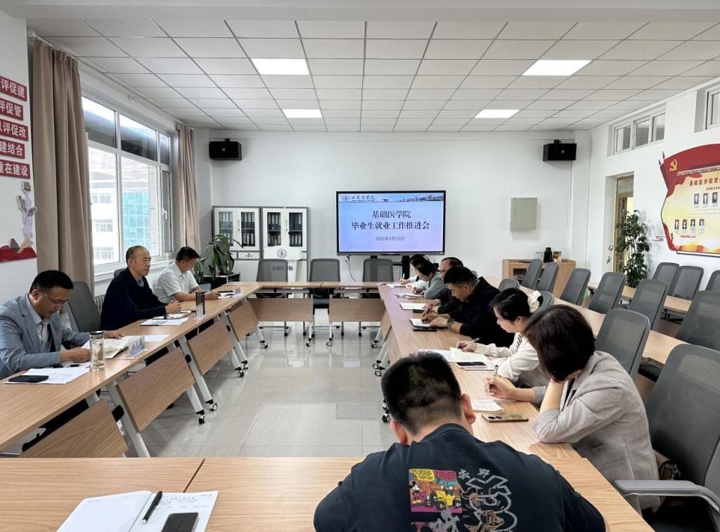为持续推动2025届毕业生就业工作,压茬推进2026届毕业生就业工作,基础医学院于9月13日上午在科技楼308会议室召开了毕业生就业工作推进会。会议由基础医学院党总支副书记、副院长徐克国主持,党总支书记雷世鑫、副院长李红恩、学生科科长高泽谨及2026届毕业生班主任参加会议。