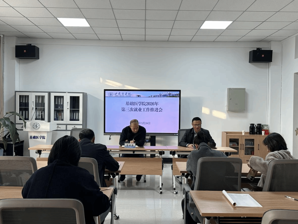 为深入贯彻落实学校关于毕业生就业工作的部署要求,以及进一步推动2026届毕业生高质量就业工作,2026年3月24日,基础医学院召开了本学年第三次就业工作推进会。本次会议由基础医学院党总支副书记、副院长徐克国主持,基础医学院党总支书记雷世鑫,2026届、2027届毕业班班主任及就业专干参加。