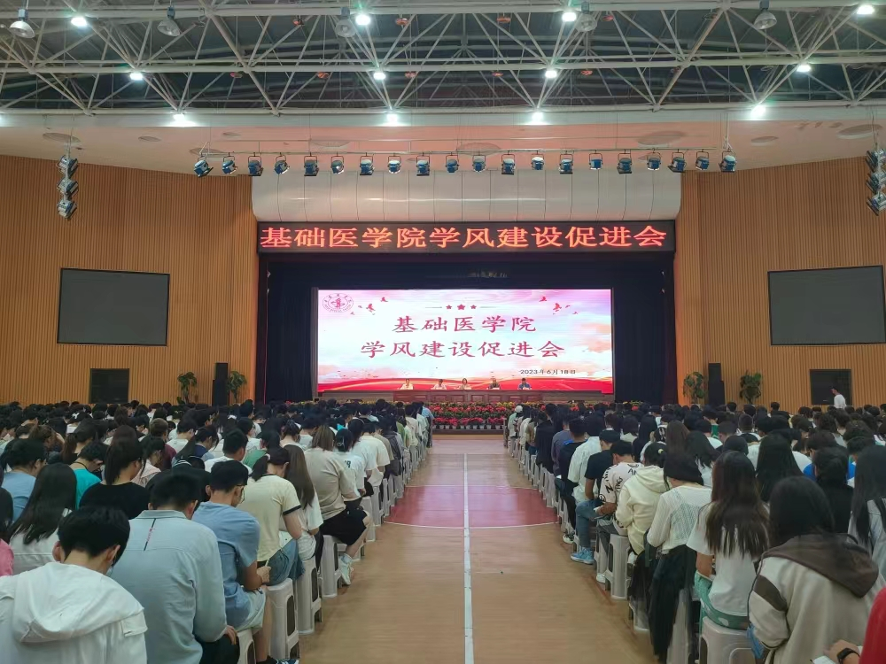 为深入开展学习贯彻习近平新时代中国特色社会主义思想,推动主题教育活动走深走实,进一步加强我院学风建设,帮助同学们明确学习目标,端正学习态度,增强学习的主动性,营造严谨、求实、好学、上进的学习氛围,切实提升学习效果。618日基础医学院在体育馆分层次召开学风建设促进会,学院党政主要负责人、各科室负责人出席会议,学生科全体辅导员、22级全体师生参会。