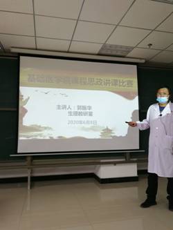 为贯彻全国全省高校思想政治工作会议精神,深入推进学校课程思政工作全面实施,深入挖掘拓展专业课程思想政治元素,充分发挥专业课程的思想政治教育功能,构建全员全方位全过程育人的良好格局,基础医学院于2020年6月8日至2020年6月17日举行了青年教师“课程思政”讲课比赛。