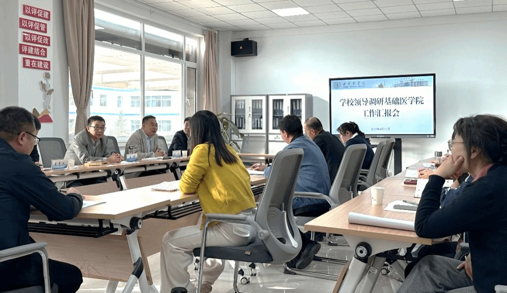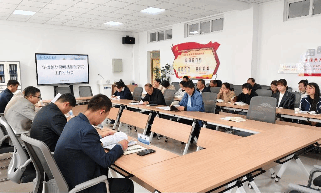 为全面了解学校“十四五”规划完成情况,科学谋划“十五五”发展规划,4月21日,王坤院长带领调研小组赴基础医学院开展专题调研,基础医学院学院全体行政人员、教研室主任、无课教师及辅导员参加会议。