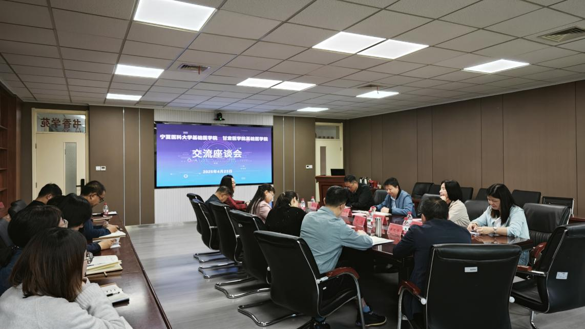 23日上午,甘肃医学院基础医学院和宁夏医科大学基础医学院在宁夏医科大学召开了座谈会,宁夏医科大学基础医学院党委书记张艳丽和甘肃医学院基础医学院副院长李红恩双方介绍了各自学院的发展历程、基本情况,办学特色以及在人才培养、师资队伍建设等方面取得的成果,并就“双带头人”党支部书记“强国行”专项行动、学科与专业建设、国家级一流课程建设、高层次人才引进、教师创新能力培养、科研项目申报及未来合作方向等内容进行了深入交流。同时还听取了医学遗传学与细胞生物学系发展建设情况汇报,双方一致表示,将进一步加强联系交流和资源共享,共同推动基础医学教育的高质量发展。