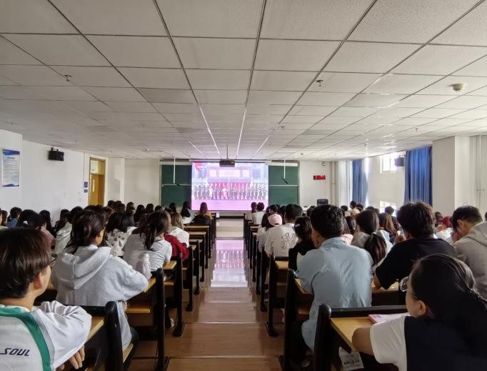 为确保此次观看活动有序开展、取得实效,学院提前进行周密部署。针对学生群体,要求各班级提前 20 分钟做好收看准备,营造庄严肃穆的观看氛围,并安排辅导员、班主任与各班学生共同观看,实时解答学生疑问,强化教育引导效果;教职工则统一集中于科技楼308会议室,共同感受这一庄重而伟大的时刻。