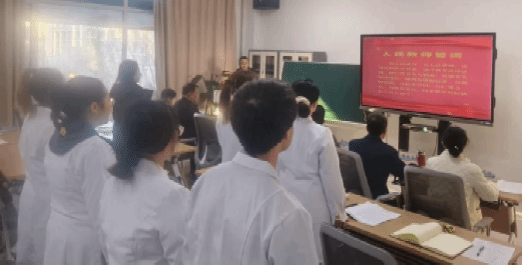 活动伊始,六位新进教师在刘晓娜老师领读下庄严宣读人民教师誓词,以铿锵之声许下承诺,表达了恪守师德、潜心育人、践行教育初心的坚定信念,现场氛围庄重肃穆。