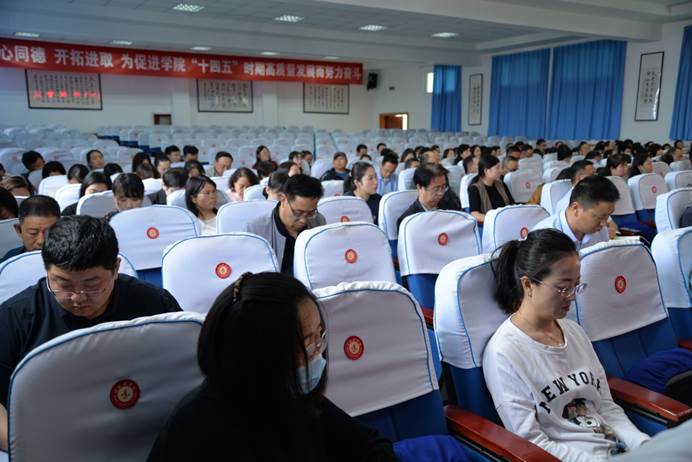 会议强调,全体党员干部和教职工,要始终做到心中有党,增强“四个意识”、坚定“四个自信”、做到“两个维护”,把旗帜鲜明讲政治贯穿始终,确保党的领导覆盖学院教育教学工作各个领域、各个方面、所有环节;要把学习习近平新时代中国特色社会主义思想作为坚定理想信念的主线,以党史学习教育为契机,着力加强政治理论学习,在个人理想、共同理想与远大理想相统一的具体实践中,践行为党育人、为国育才的初心和使命;要坚守好纪法底线、社交底线、兴趣底线,时刻保持清醒的头脑,珍惜自己的政治生命,珍惜自己的工作岗位;要严守政治红线、师德红线,要追求职业道德高线,以高度的使命感和责任感落实好立德树人根本任务。