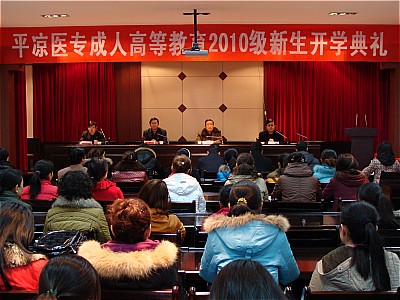 2010年1月17日我校成人高等教育2010级新生开学典礼在办公楼第二会议室隆重举行,平凉医专党委副书记、纪委书记王文新、平凉医专副校长董金玉、平凉医专校长助理、办公室主任陈佑泉、继续教育学院工作人员、新生班主任及全体学生参加了开学典礼。开学典礼由副校长董金玉同志主持,党委副书记、纪委书记王文新同志作了重要讲话,校长助理、办公室主任陈佑泉同志介绍了学校概况,新生班主任代表刘爱生老师和新生代表分别作了发言,继续教育学院相关负责同志对成人教育教学管理办法和要求作了说明。