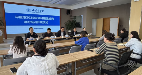 9月15 日上午,平凉市 2025 年度全科医生转岗培训理论阶段开班典礼在我院举行。继续教育学院副院长李德双主持会议,平凉市卫生健康委人才服务中心主任杜东旗、附属医院医务科科长周广华及学院办公室工作人员、班主任及全体参训学员近30人参加会议。