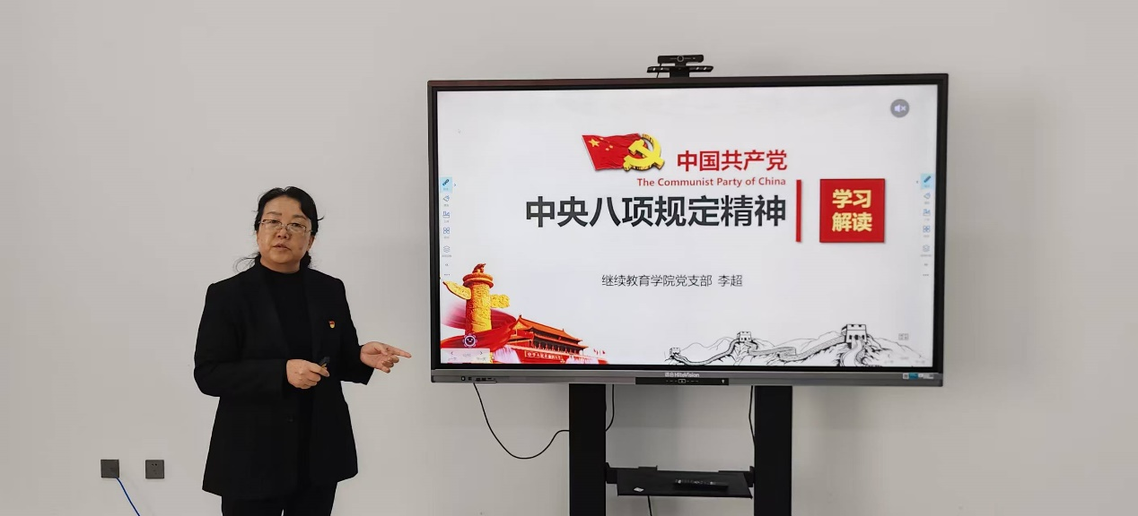 2025年4月3日,继续教育学院党支部开展深入贯彻中央八项规定精神学习教育专题党课,全体党员和教师参加。