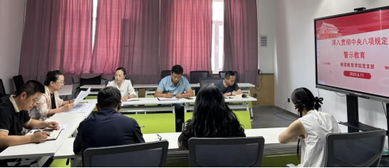6月11日,继续教育学院党支部召开6月份主题当日活动,围绕“深入贯彻中央八项规定精神”开展专题学习与研讨,结合警示教育,进一步筑牢纪律意识,推动作风建设走深走实。