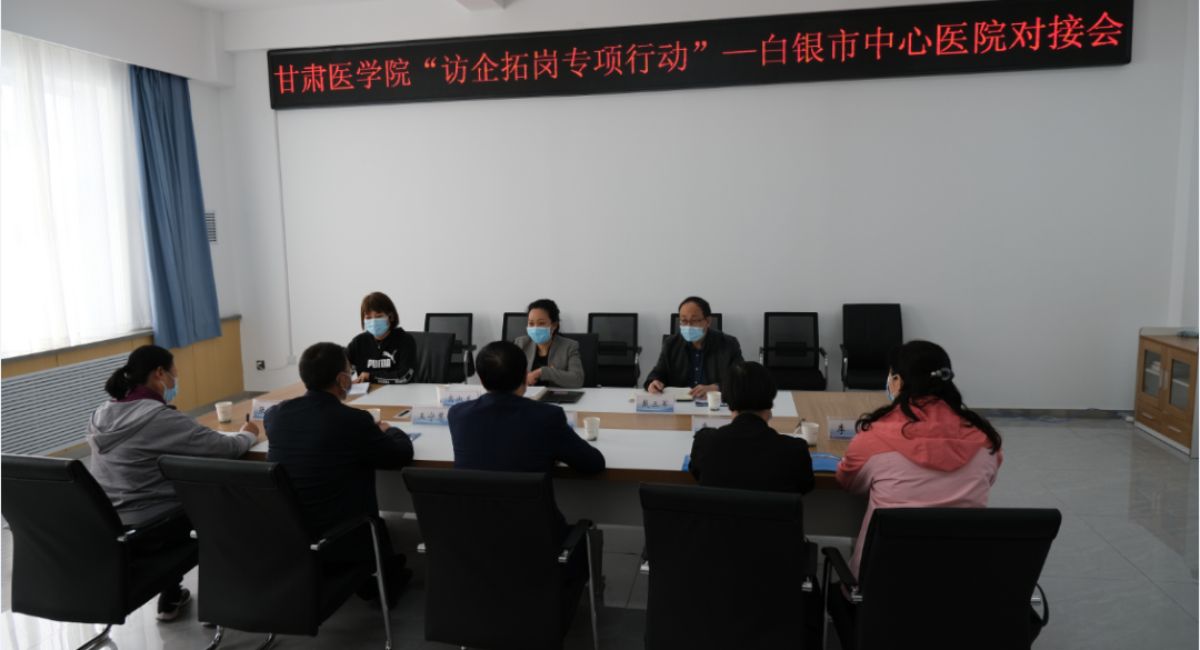 4月20日和4月24日学院党委书记高淑美、纪委书记杨建福与白银市中心医院、华亭市卫生健康局、华亭市第一人民医院、华亭市第二人民医院、华亭市中医医院共5家用人单位在大学生就业创业指导中心开展“访企拓岗”对接交流座谈会。会上双方围绕专业设置、人才培养、就业实习、供需现状、用人需求、研学交流等进行深入交流,达成广泛共识。白银市中心医院等单位表示要与学院建立实习、教学医院,更加高效地做好实习就业直通工作。