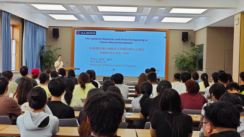 2025年5月21日,南方医科大学与伊利诺伊大学厄巴纳-香槟分校双聘教授罗树红应邀来校作题为《肿瘤微环境中的细胞因子网络与旁分泌调控》的学术讲座,深入探讨肿瘤微环境(TME)在免疫调控、耐药性及治疗策略中的核心作用。学校师生线上线下百余人参加了本次学术会议。