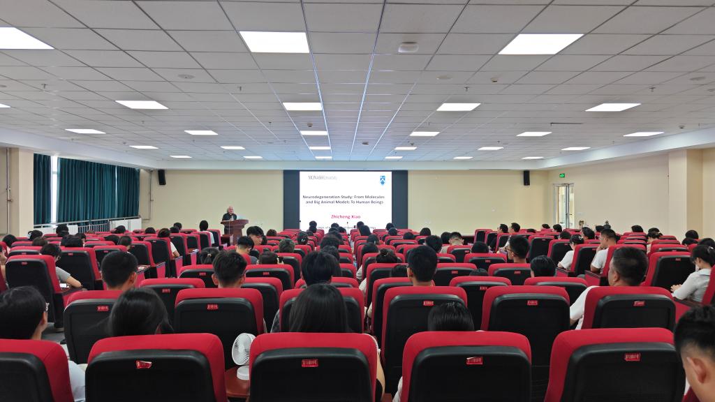 报告中,肖教授以“Neurodegeneration Study: From Molecules and Big Animal Models To Human Beings”为主题,结合自身科研历程,以轴突退化和阿尔茨海默病(AD);成人脑中的胎儿干细胞、阿尔茨海默病(AD)、帕金森病(PD)和肌萎缩侧索硬化症(ALS)的猪模型;髓鞘形成;人工智能辅助植物药研发等五个方向讲述了其在一系列具有国际影响力的前沿科研成果,并在相关的成果转化方面分享了自己的丰富的经验和独到的见解。