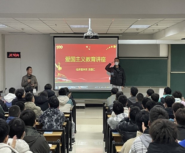为弘扬爱国主义精神,增强广大师生国防观念,积极投身国防建设,临床医学系组织开展以征兵政策宣传为主要内容的爱国主义教育,培养学生的家国情怀,号召同学们携笔从戎保家卫国,在绿色军营中奋斗自己的青春。