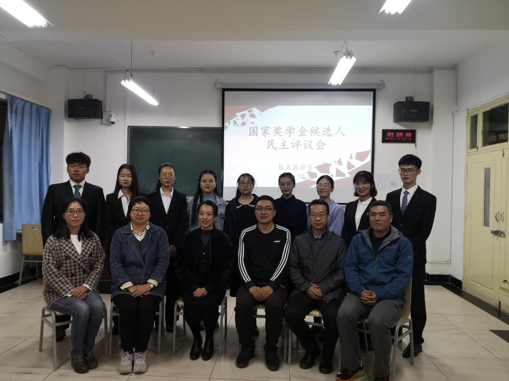为激励我系学生勤奋学习、积极进取,在德、智、体、美等方面得到全面发展。临床医学系于2020年10月6日在一号教学楼举行2020年度国家奖学金候选人奖学金评选演讲。本次评定小组成员由年级主任和班主任代表组成,学生管理科副科长李沛老师主持会议。