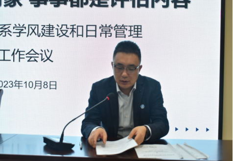 最后,李宝成同志强调:一要高度重视,精心组织,全系上下必须充分认识评估工作的重要性和紧迫性,以高度的责任心做好各自工作。二要统筹安排,措施到位,全体师生员工必须服从评估工作大局,责任到人,相互配合,团结协作,按照学校工作安排统一行动,做好贯彻落实。三要调整心态,提振信心,每一位师生都要以饱满的精神状态和积极乐观的工作热情开展工作。