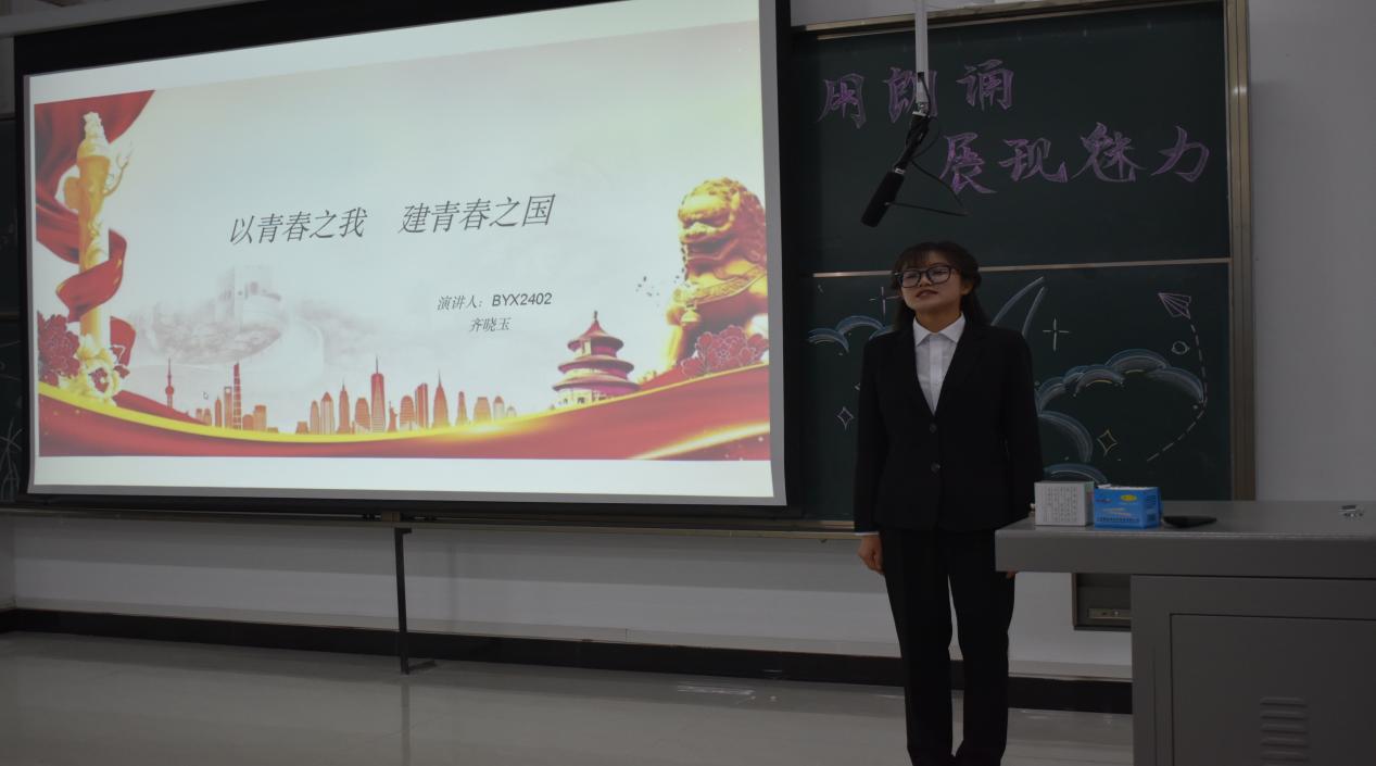经过激烈的角逐,最终,齐晓玉同学的《以青春之我,建青春之国》以其深厚的功底和饱满的情感表达,摘得桂冠。她的朗诵,不仅是技艺上的胜利,更是对爱国的一次深情致敬,展现了年轻一代的爱国之心。