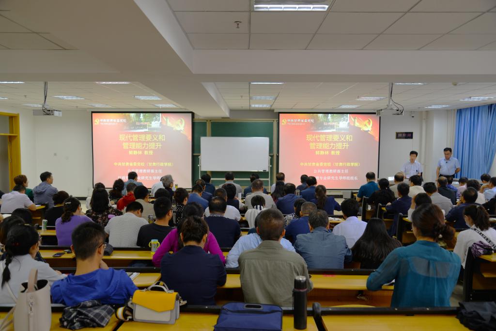 培训班邀请省委党校公共管理教研部主任鲜静林教授和省委党校文史教研部原主任肖安鹿教授作专题授课,开展现代管理要义和行政管理能力提升培训、公文写作及语言文字培训。肖安鹿教授还为全体教职工作了意识形态工作专题讲座。