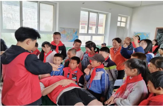 志愿活动中,实践队员走进陇西县永吉乡直沟小学开展爱心宣讲活动。活动主要有理论宣讲和动手实践两个环节,他们为小学生们科普健康知识、演示急救方法等。