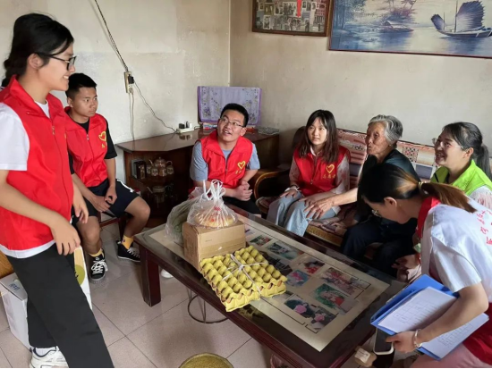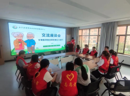 在会宁县居家和社区养老服务中心,队员们了解老人们的生活状况,并运用所学知识为老人们进行血压测量,进行了日常生活安全宣讲。队员们带着鸡蛋、牛奶、米面油等日常生活用品到高龄孤寡老人家中,为他们送去温暖和关爱。