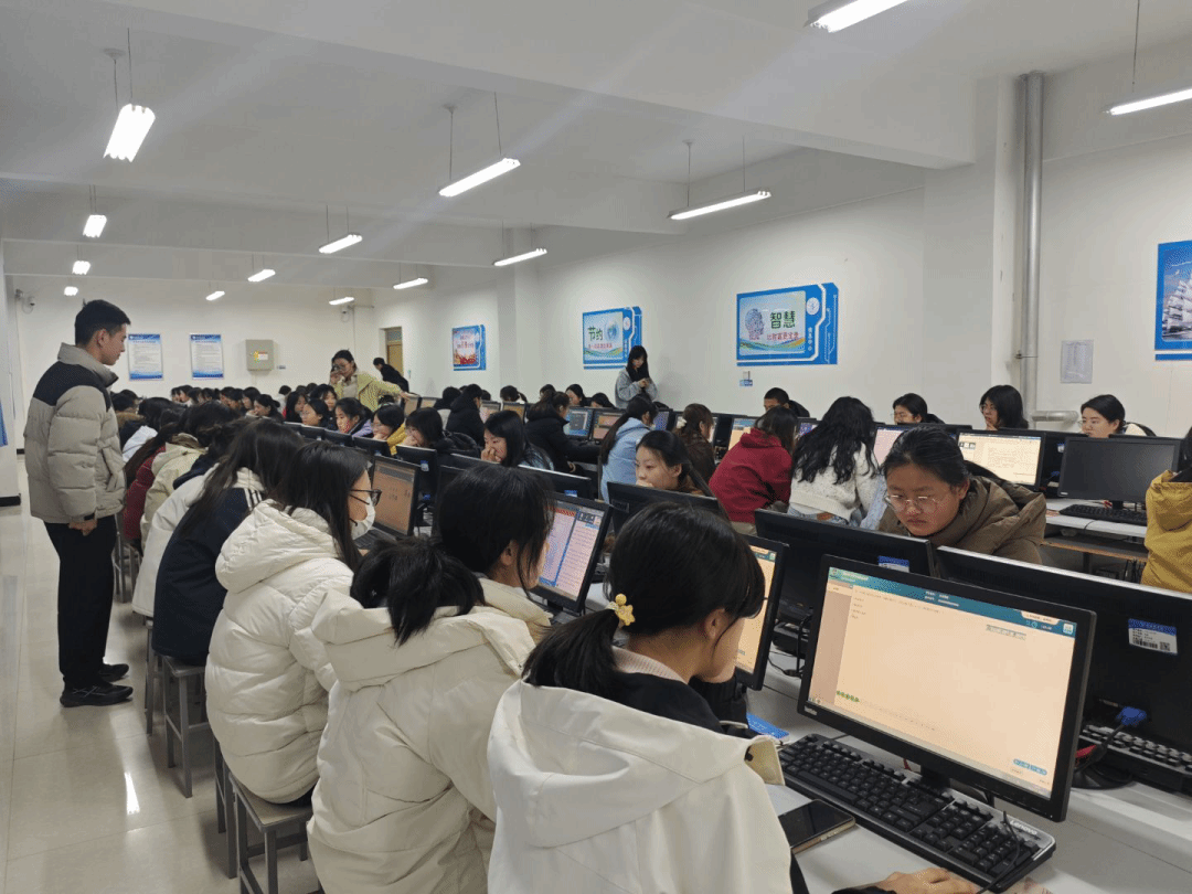 比赛全程按照计算机二级正式考试要求开展,题型、时长、操作界面均与统考保持一致,采用机房闭卷作答形式,让参赛选手切实感受机考节奏与考试压力。考后系统即时生成成绩报告,帮助选手快速定位知识盲区和备考短板。赛事现场,选手们沉着冷静、认真作答,严守考场纪律;志愿者们分工明确、高效协作,从考场布置到考后整理,各环节衔接顺畅,赛事有序推进。