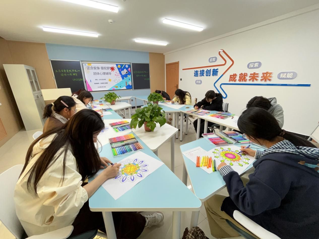 4月16日下午,由党委学生工作部(学生工作处)心理咨询中心主办的“一站式”学生社区第四场团体心理辅导活动顺利举行。本次活动面向公共卫生学院学生,以“正念安身·曼陀罗悦心”为主题,采用沉浸式艺术疗愈的形式,将心理健康服务送到学生身边,活动延续了正念放松与曼陀罗绘画相结合的双重模式。