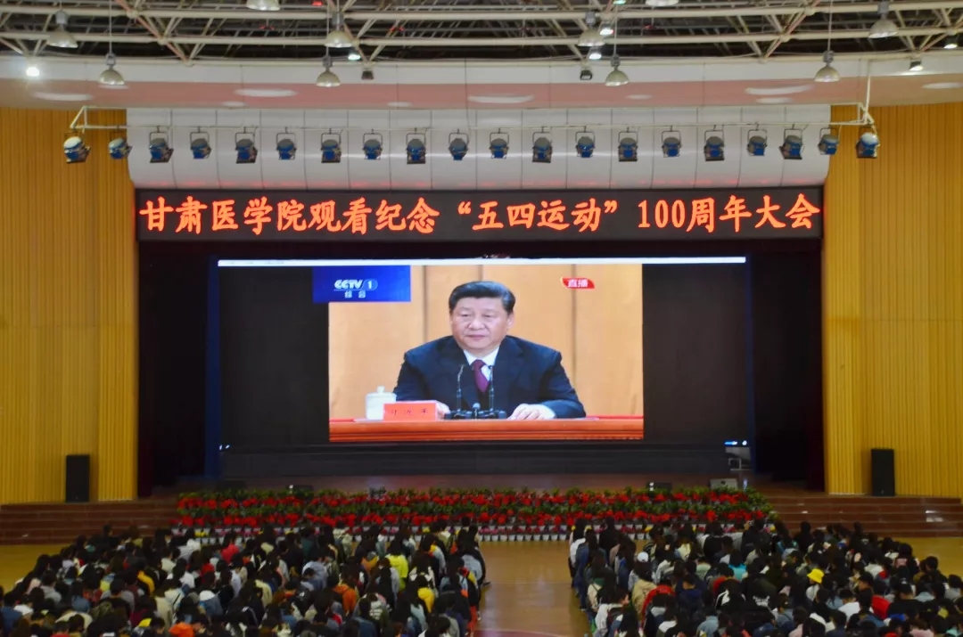 在学院召开的纪念五四运动100 周年表彰大会暨青春故事分享会上,学院党委副书记、副院长崔安平同志出席会议并作讲话。大会表彰奖励了2018年度涌现出的先进团组织、优秀社团及先进个 人,新团员进行了入团宣誓。随后,考入哈尔滨医科大学硕士研究生的医学检验技术1503班的贾曼莎同学,获得励志奖学金的护理专科1702班的徐理同学, 携笔从戎、誉满返校的医学检验本科1801班的马娟霞同学分别作了报告,分享了她们的青春故事。新时代赋予新使命,新目标开启新征程。广大青年对五四运动 的最好纪念,就是在党的领导下,勇做走在时代前列的奋进者、开拓者、奉献者,努力成长为德智体美劳全面发展的社会主义建设者和接班人,让五四精神放射出更 加夺目的时代光芒。组织人事处副处长潘润存主持会议,党委宣传部、学工部、团委及相关部门负责人、各系团总支书记、专职辅导员、受表彰的集体及个人约 500余人参加了会议。