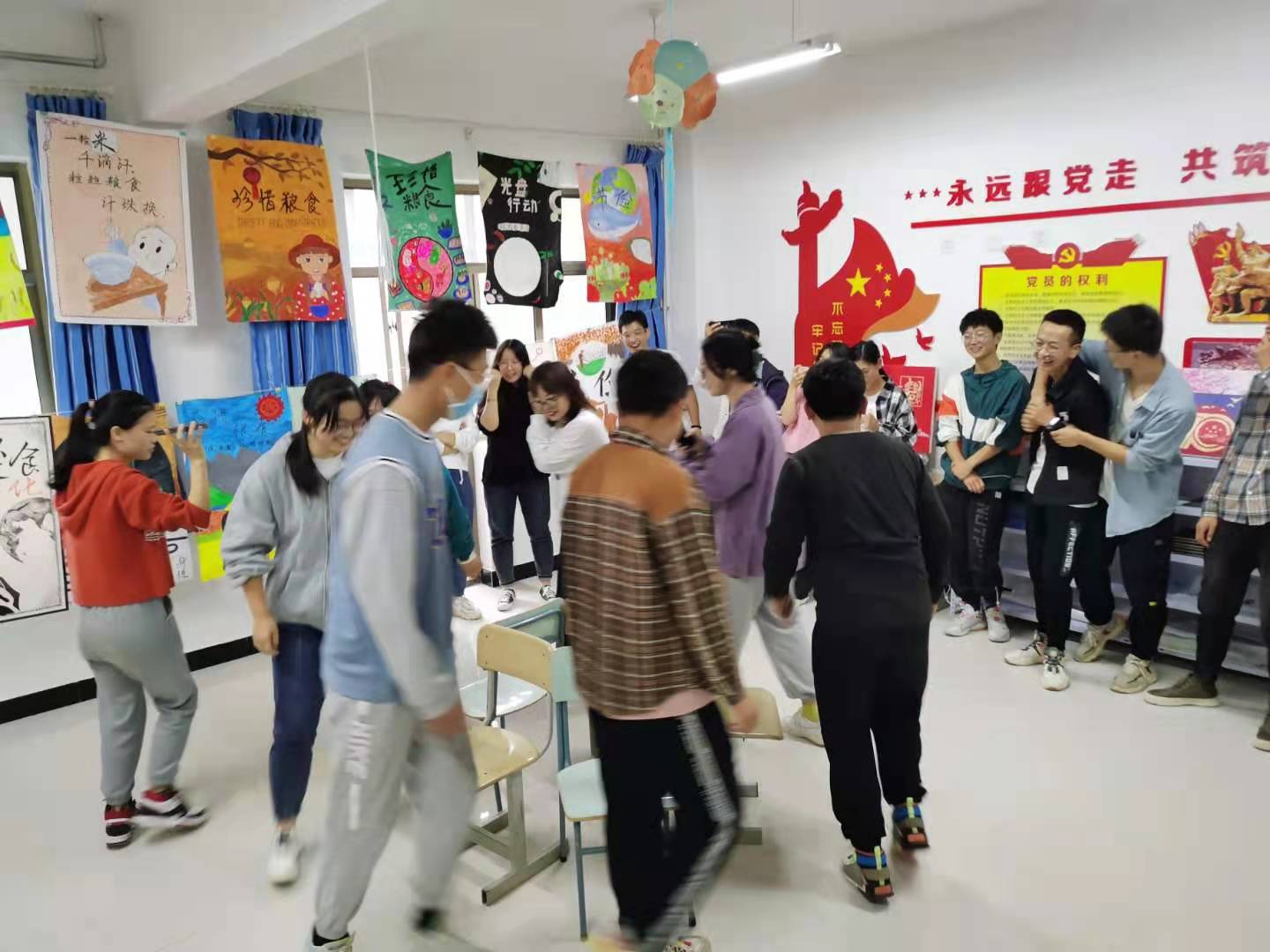活动伊始,辅导员老师先对活动的规则和注意事项进行说明;接着,同学们通过点头示意、眼神交流、肩膀碰撞等方式交流感情。“马兰开花”“心有千千结”“抢椅子”“一元几角”等互动游戏拉近了同学们彼此间的距离,让大家互相信任、充分感受到团结力量的魅力,现场气氛其乐融融,欢声笑语充满着整个活动室。游戏过后,辅导员老师对本次活动进行总结,最后大家围成一个同心圆,一起合唱《感恩的心》,表达了同学们面对生活坚定向前的信心。