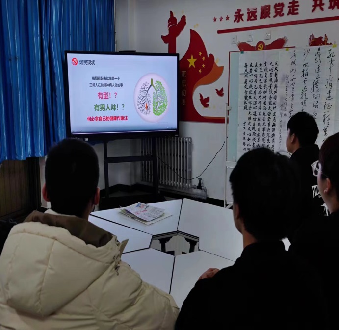 在辅导员老师组织带领下召开主题宣讲会,通过面对面讲解、观看吸烟有害宣传知识和推送微信视频、讨论会、专项检查、手抄报等形式,让学生认识到吸烟对自己和他人身心健康的影响,自觉摒弃吸烟、乱扔垃圾等陋习,做文明、向上的大学生。
