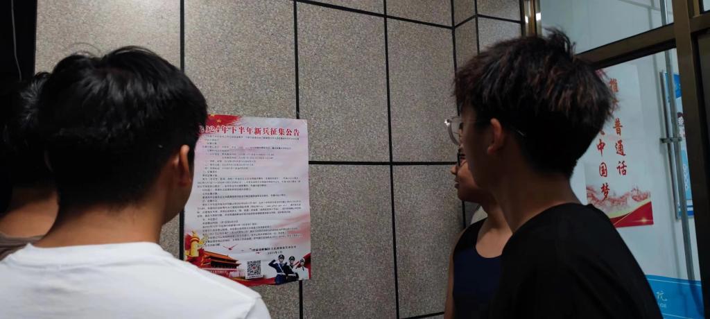 为扎实做好2024年上半年的征兵工作,提高征兵宣传效果,鼓励学生积极响应国家号召,踊跃报名参军,6月17日,在学工部征兵工作站的安排部署下,各公寓辅导员深入学生宿舍开展征兵宣传宣传工作,向学生详细解读征兵流程和优惠政策等细则。