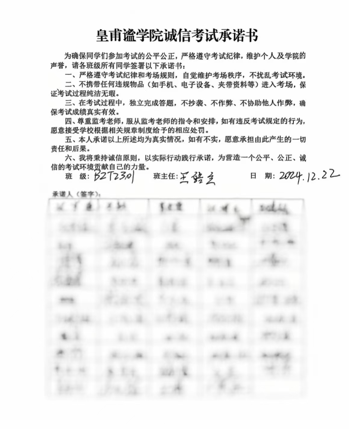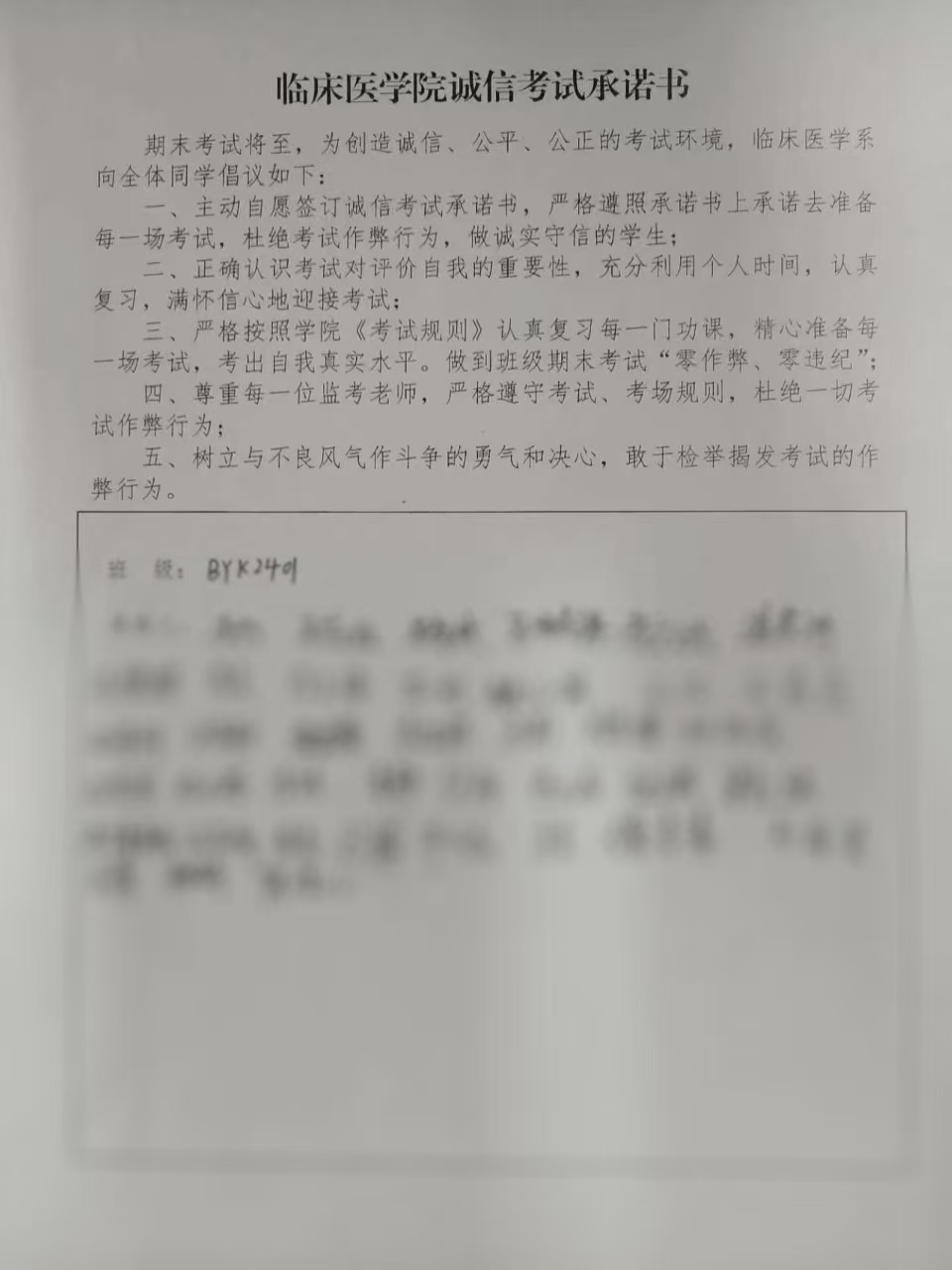 此外,部分班级还组织学生签署了诚信考试承诺书,通过这种方式,进一步强化同学们的诚信意识和责任意识,让诚信考试的观念深入人心。